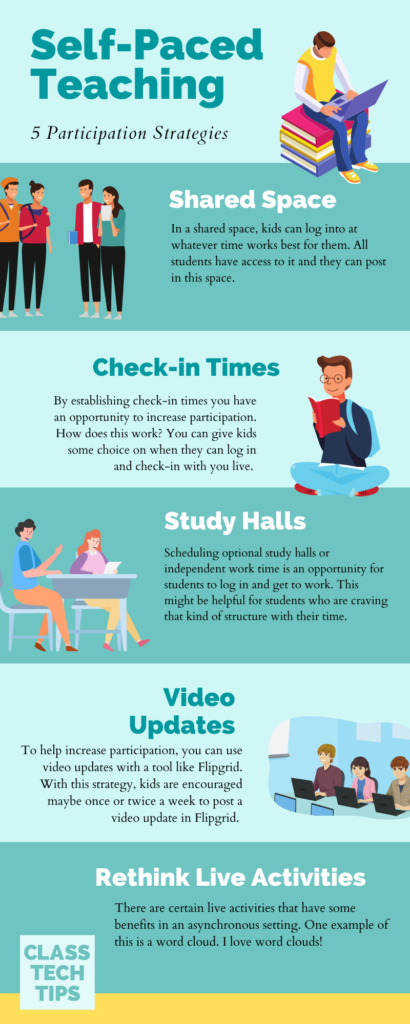 In this episode, I’ll share participation strategies to try out when students are working on their own, or through self-paced activities during asynchronous instruction. You’ll hear six strategies and a half-dozen EdTech tools to help you put these ideas into action.